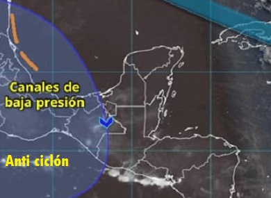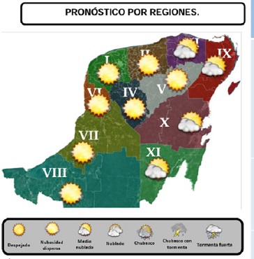 CAMPECHE: Cielo parcialmente nublado y sin lluvias, debido a un amplio anticiclón, con ambiente de muy caluroso a extremadamente caluroso en el día. Los vientos soplarán del Sureste, aunque virarán en la tarde al Este-Noreste, con rachas de 40 km/h en la costa.