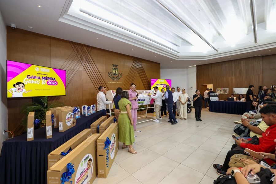 MÉRIDA, Yucatán, lunes 27/04/2026.- En reconocimiento al compromiso y corresponsabilidad de la ciudadanía que cumple oportunamente con el pago del impuesto predial, el Ayuntamiento de Mérida llevó a cabo el Sorteo “Gana Mérida, ganas tú”, en el que se entregaron 50 premios, entre automóviles, motocicletas, laptops, televisores y tabletas.