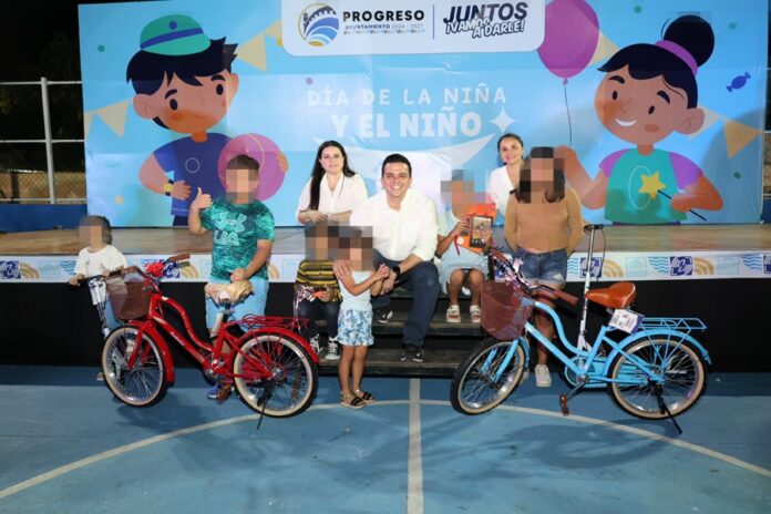 PROGRESO, Yucatán, lunes 27/04/2026.- Con el propósito de celebrar el Día de la Niña y el Niño y fomentar la convivencia familiar, el Ayuntamiento de Progreso, encabezado por el alcalde Erik Rihani González, llevó a cabo un festival en la cancha Cházaro Pérez, donde se dieron cita cientos de familias para disfrutar de una jornada dedicada a la recreación de la niñez progreseña.