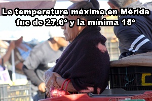 MÉRIDA: Máxima, 27.6º C, Sur; mínima 15º, Norte