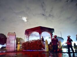 Una bombita quema el pesebre en el parque principal de Kanasín